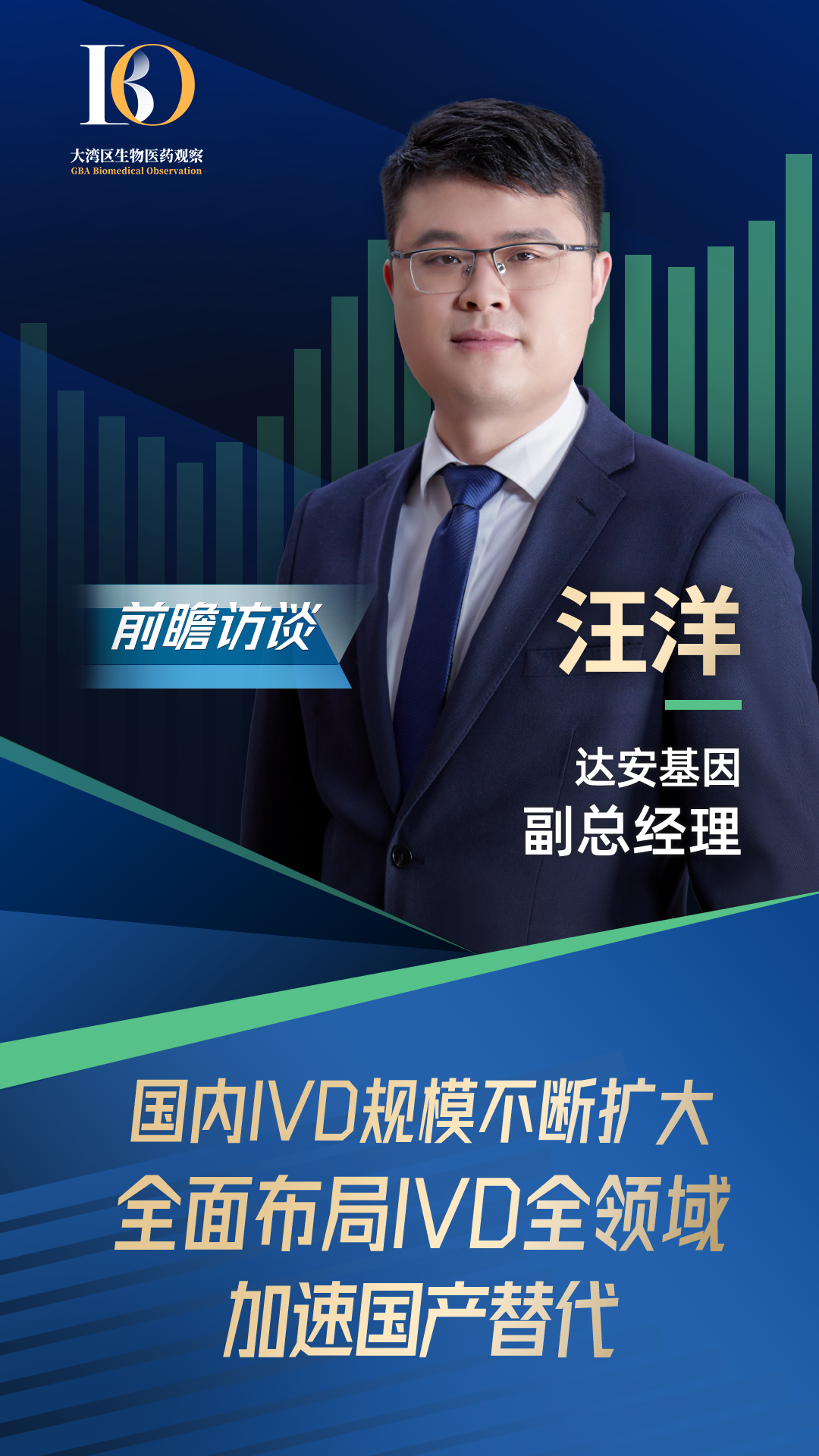 全球IVD已成为千亿美元的大市场。与全球市场相比,中国IVD行业发展时间较短,但市场规模增长速度快。根据弗若斯特沙利文数据,2021年我国体外诊断市场规模为1243亿元。2023年3月,国家医疗保障局出台了针对体外诊断试剂编码的规则办法,标志着我国体外诊断市场向规范化发展。目前,IVD的国产占比约为40%,但各细分领域发展阶段不同,国产化差异明显。其中,在分子诊断细分领域,我国已处于国际领先地位,国产产品占据95%以上的市场份额。分子诊断是通过分析患者体内遗传物质,如DNA、RNA或蛋白质的表达,从而作出诊断的一种技术,分子诊断技术平台可分为PCR、分子杂交、生物芯片等细分领域市场。三年疫情将分子诊断行业推向新的高峰,成为市场成长最快的细分领域。随着医疗需求和国家政策的扶持,还将进一步增长。达安基因是国内分子诊断试剂行业的龙头公司,也是我国核酸检测技术的开创者,经过30多年的积累,贯通全产业链条,集临床检验试剂、仪器和配套耗材自主研发、生产、销售,实现自主化操作。近日,大湾区生物医药观察团队采访了达安基因副总经理汪洋。新形势下,达安基因将如何推进新战略,发挥龙头企业优势和力量,带动产业发展?疫情打开了分子诊断市场在大众中的认知度,产业得以快速发展。在这期间,汪洋的职业生涯也迎来了一次大“跨界”。他原是达安基因的财务部总监、营销总监,2021年,汪洋就任达安基因副总经理,统筹管理营销中心,当年带领销售团队完成公司最高业绩75亿元。谈及如何适应身份的转变,汪洋表示,作为14年的达安人,财务岗位的工作经历,需要了解业务团队需求、参与公司营销政策制定等等,让他一直以来都对公司的业务、产品以及市场环境有深度理解,也能够敏锐捕捉市场变化。力争做一个既懂财务又懂业务的综合管理人员,是他给自己的定位。
