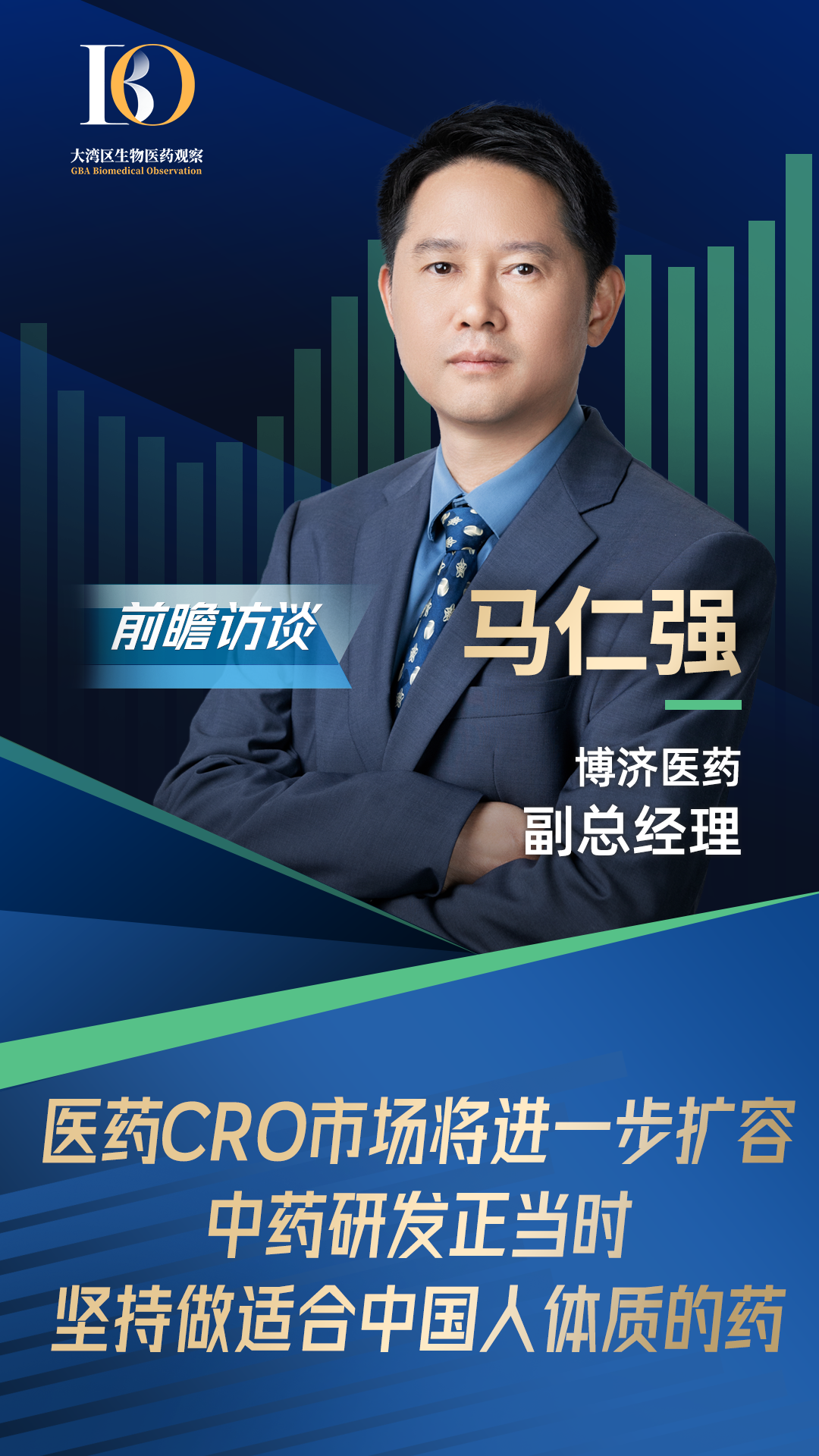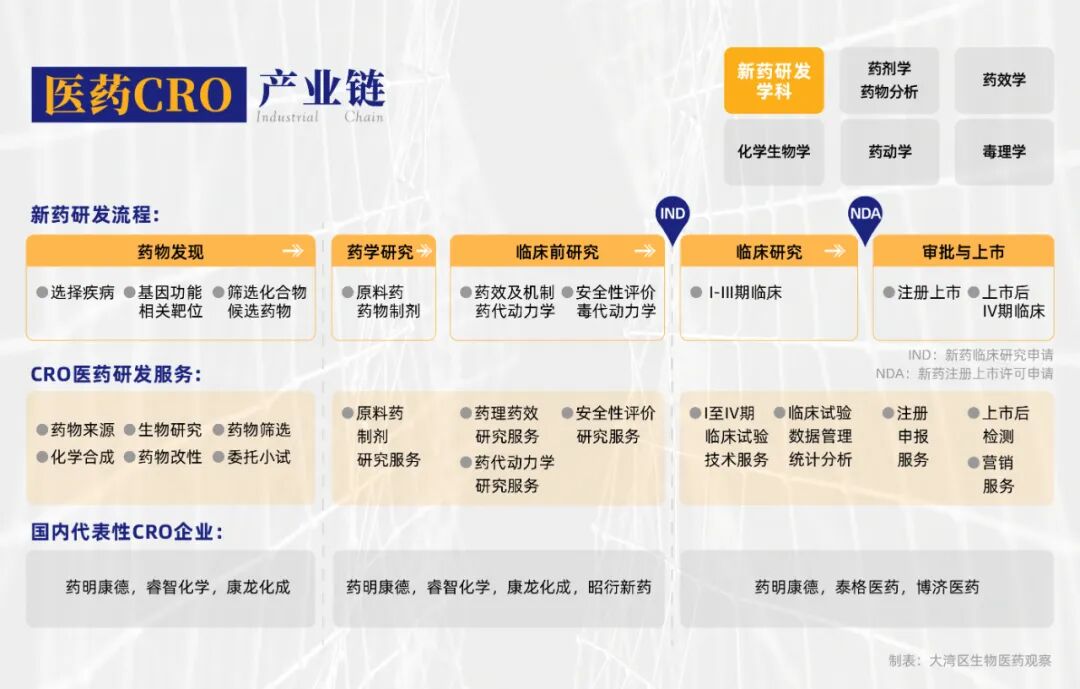 医药CRO企业,为药企及研发机构提供研发外包服务。通过合同形式,在研发过程中提供新药的药物发现、临床前研究、临床试验、申报注册等专业外包服务,以降本提速。2023年,根据弗若斯特沙利文的统计及预测,全球CRO市场渗透率将增长至49.3%,市场规模约为877亿美元,而海外CRO巨头公司占据近一半的市场份额。我国CRO行业仍处于发展早期,但近年来发展势头良好,存在较大的发展空间。根据弗若斯特沙利文数据,2021年我国CRO市场规模已达100亿美元,约占全球市场份额的14%。2024年,将达到222亿美元,占比提升至约23%。博济医药(300404)成立于2002年,见证了我国CRO行业的发展,是国内为数不多可以提供“一站式”全流程外包服务的CRO企业,可提供新药研发各个阶段的全部或大部分服务,涉及化学药、生物药、中药及医疗器械研发与生产。其中,在中医药领域,在全国少有的提供中药CRO服务的企业中,博济医药是唯一一家上市公司。医药CRO行业赛道越发拥挤。近日,大湾区生物医药观察团队采访了博济医药副总经理马仁强,如何发挥特色服务优势,保持市场竞争力?2005年,马仁强加入博济医药,十多年的积累,具有丰富的新药开发经验。他和其核心团队人员,都是中医药专业出身,因此公司率先在中药CRO行业布局。虽是中药CRO龙头,但博济医药不仅提供中药临床前、临床服务与申报注册,同样提供生物药、化学药以及医疗器械的研发服务与生产。“我们应该是国内最早做CRO服务的公司之一。虽然国外早早开展,但当时国内还处于启蒙阶段。”马仁强介绍。一款药物在上市前,必须经过临床前研究,包括药学研究、安全性评价等多个细胞实验和动物试验,以及临床试验研究,通常共有四期临床试验,其中I-III期临床试验在上市前开展,上市后开展IV期临床试验。证明药物的有效性和安全性后,才能申报注册上市。整个过程,需要大量专业场地、仪器设备、试剂耗材和专业人才资源。据统计,药企平均要花费超过 10 年时间和超过 10 亿美元。专业性强、技术门槛高,CRO 行业应运而生。据统计,可将总体耗时从497周减少至342周,节约了31.19%的临床耗时。